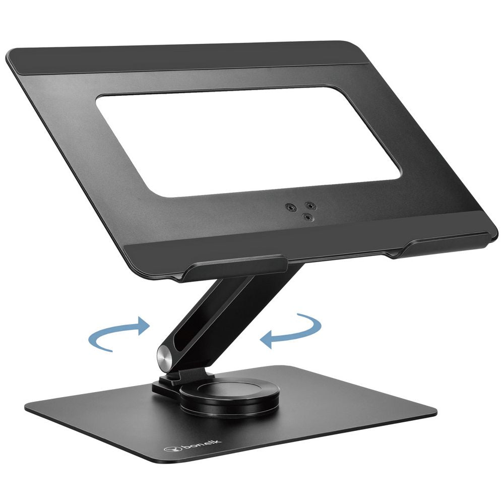 Set up your ideal home workspace with this Bonelk Elevate 360 Laptop Stand. Featuring a 360° rotatable arm connected to the base, this laptop stand allows you to swivel your laptop to any angle for improved ergonomics. Find the perfect viewing angle with dual pivot tilt functionality, plus, its collapsible design folds down for easy transportation - perfect for office days.